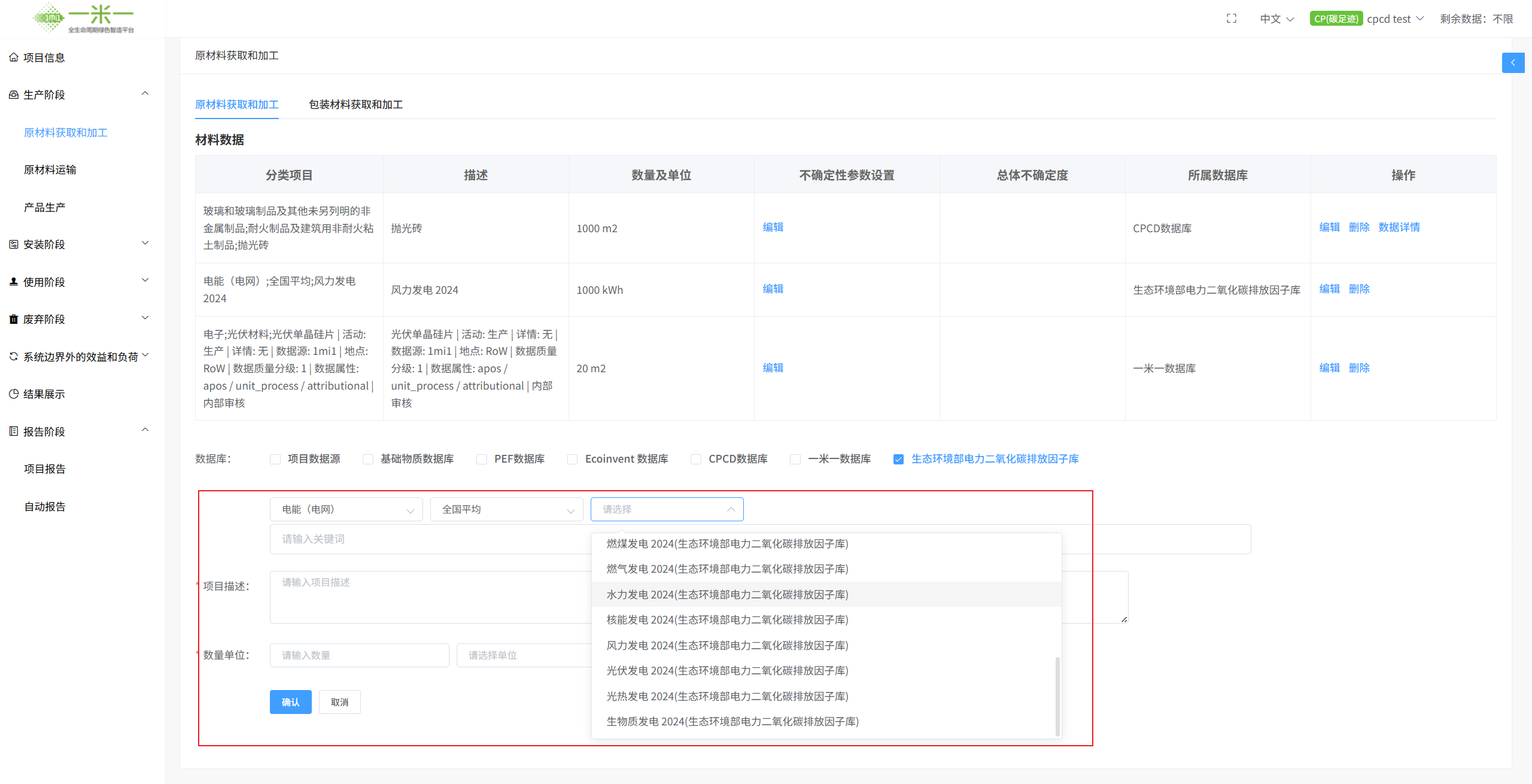 · 一站式调用: 平台不仅内置了一米一自建库,现在更无缝集成了CPCD开源库以及生态环境部官方电力因子。